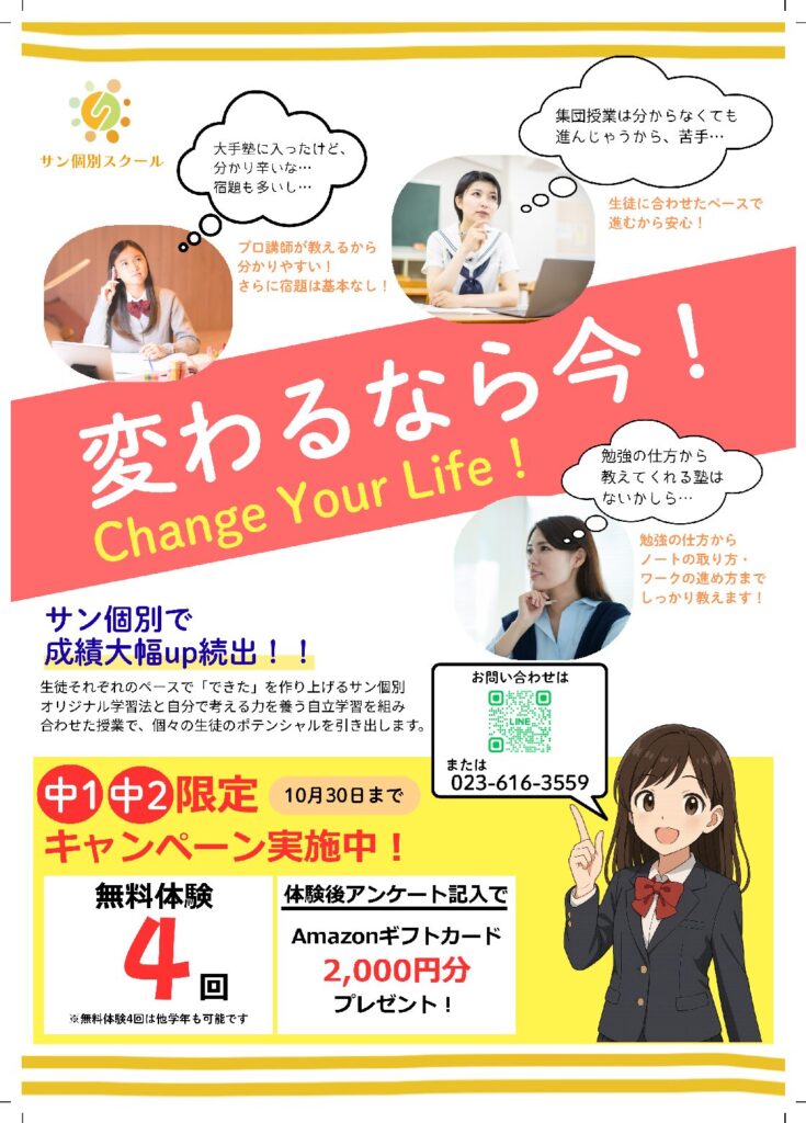 しかも、只今中1、中2の皆様限定のキャンペーン中!